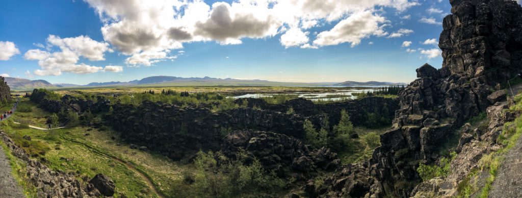 Nach einer kurzen Nacht, da wir ja auch eine Zeitverschiebung von 2 Stunden hatten ;-), schimmerten bereits seit 03.30 Uhr die ersten Sonnenstrahlen durch die Gardinenritze, somit war die kurze Nacht vorbei. Also standen wir beizeiten auf und gingen um 07.00 Uhr zum Frühstücken. Frisch gestärkt, packten wir unser Auto, machten einen Zwischenstop bei einem tollen Bäcker, damit wir tagsüber keinen Hunger erleiden mussten. Nun ging es so los, den berühmten Golden Circle zu erkunden. Zuerst fuhren wir zum Nationalpark Pingvellir.